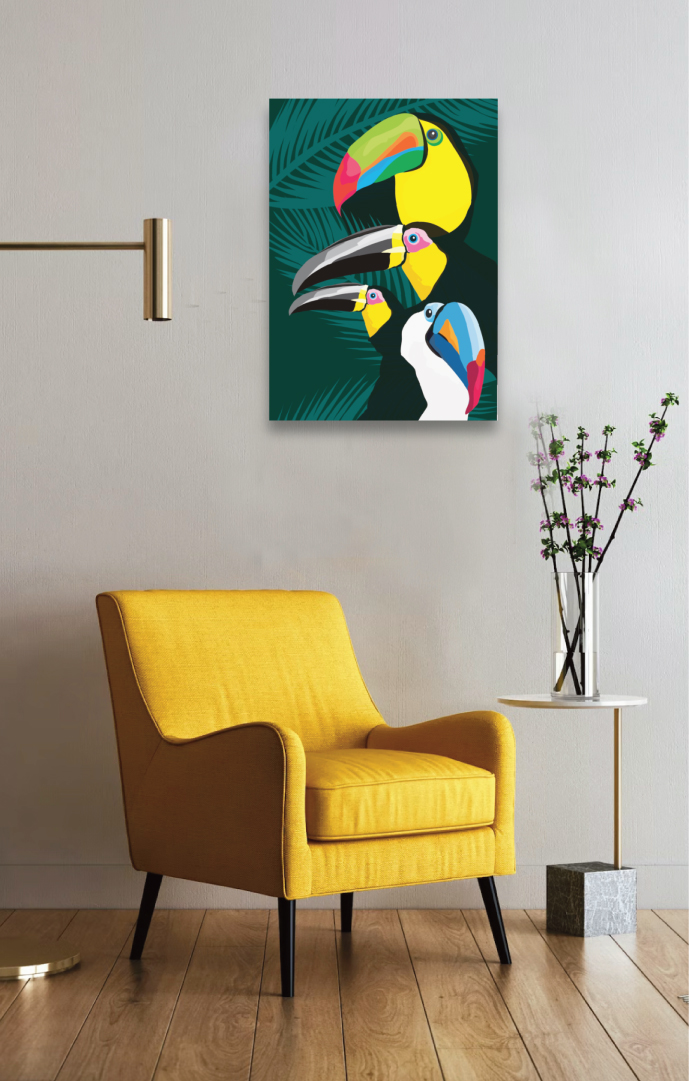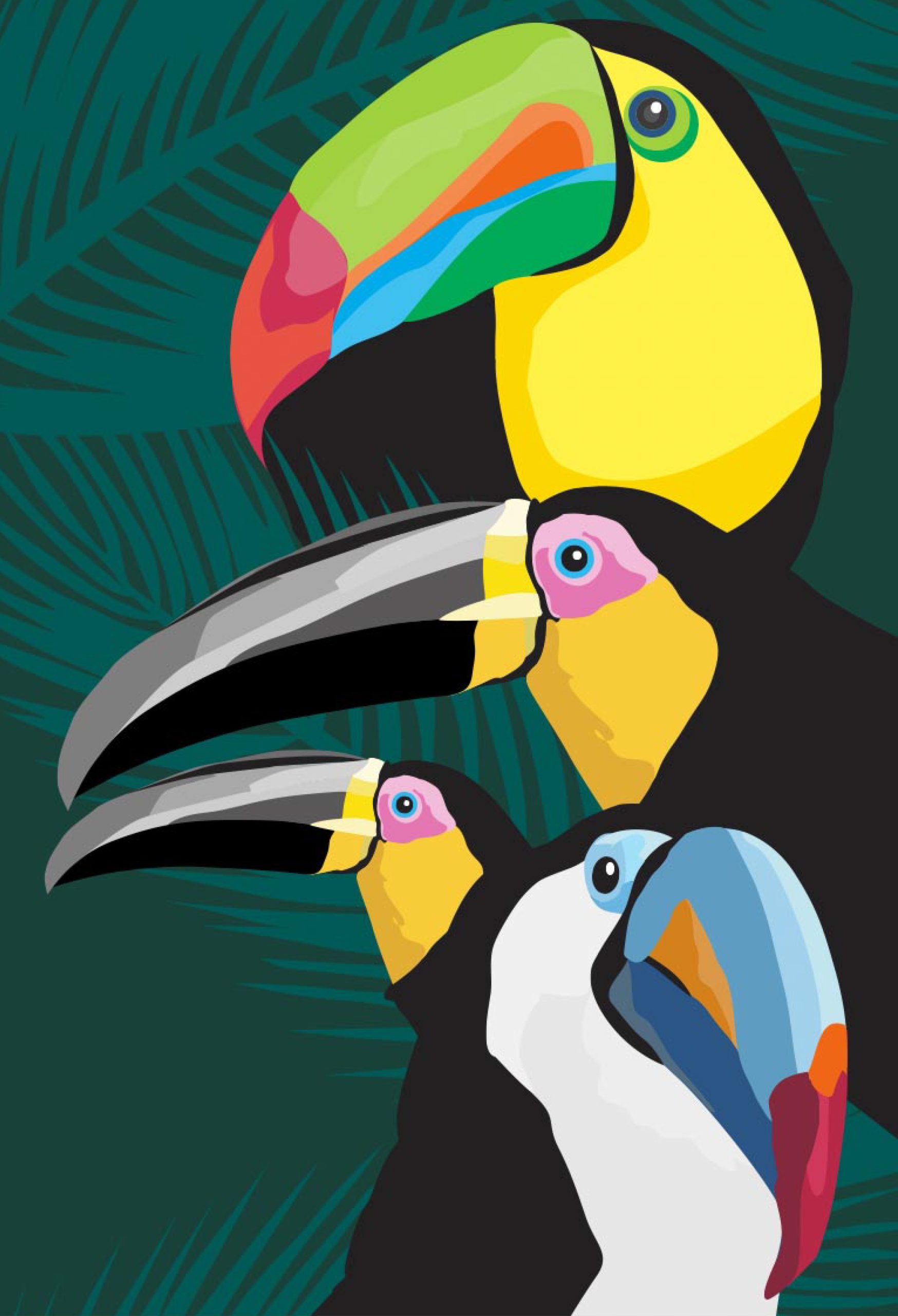 “Colorful Birds.” Have your tropical bird on your wall at home or in the office; it will brighten any room it lands in. Printed on 80lb premium quality smooth matte paper that brings out the true colors of the collection.